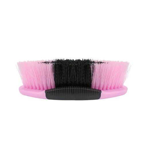 A medium bristle flexible body brush that adjusts to your hand and is soft on your horse. This Show Time body brush features all nat...