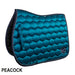 A luxuriously styled saddlecloth with a high gloss hexagon shaped quilt and Coolmax lining. The anatomically shaped spinal seam ensures an improved fit under the saddle, whilst the elegant detailing allows you and your horse to look your best at all times. The Coolmax lining efficiently wicks moisture away from your horse’s sensitive back – ensuring your horse remains comfortable throughout your ride. Finished with a decorative striped cord and satin finish trim in complimentary colours. Available in General Purpose and Dressage shapes. Back seam length: 61cm.