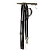 Elasticised leather straps that connect from the girth / lunge roller and clip onto the bit / lunge caveson. They can be used for flat work and lunging. Side reins help accustom the horse to the bit, and reward the horse when it gives or flexes to bit pressure. They encourage balance and correct head carriage, help a horse develop self-carriage, and help stop a horse from over-bending in the neck. Solo leather side reins have numbered holes so you can make sure they are buckled evely on both sides and are easy to adjust. Black or brown