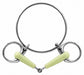 The revolutionary polyurethane mouthpiece in Apple Mouth bits is apple scented and easily accepted by any horse. The material will not peel or flake in the horses mouth. The Apple Mouth bit is long wearing, non-allergenic and stimulates salivation. It is shaped to fit the tongue and bars of the mouth. The mouthpiece cannot pinch or damage the corners of the mouth and is very effective on young horses. The thin, large loose ring in this racing bit acts as a second bit and encircles the lower jaw. Sizes: 5" only.