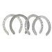 Aluminum Alloy Horseshoes For Tournament Play. Features: Wide Web for Increased Bearing Surface and Hoof Wall Support. Full Wide Crease Permits Deep Seating of Nail Head in Counter Sink Without Hang-up on Crease Walls. Increased Inside Shoe Taper Provides Added Relief from Snow and Clay Build-up. LightWeight for Reduced Fatigue. 10Degree Crease Draft Gives More Control over Slant when Following Draft of Foot and Hoof. Specifications: Size 4: Front Width: 12.5cm Rear Width: 12.2cm Size 5: Front Width: 12.9cm Rear Width: 12.7cm Size 6: Front Width: 13.4cm Rear Width: 13.3cm Material:Aluminum Alloy Package Contents: 2 * Front Horseshoe 2 * Rear Horseshoe . We are an international based seller that wi
